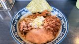 ラーメンももちろん提供されていますが、まぜそばとは表情が大きく異なります。ラーメンは乳化した豚骨醤油スープが主体で、しっかりとした旨味とコクがありながらも、スープがある分バランスよくまとまった味わい。