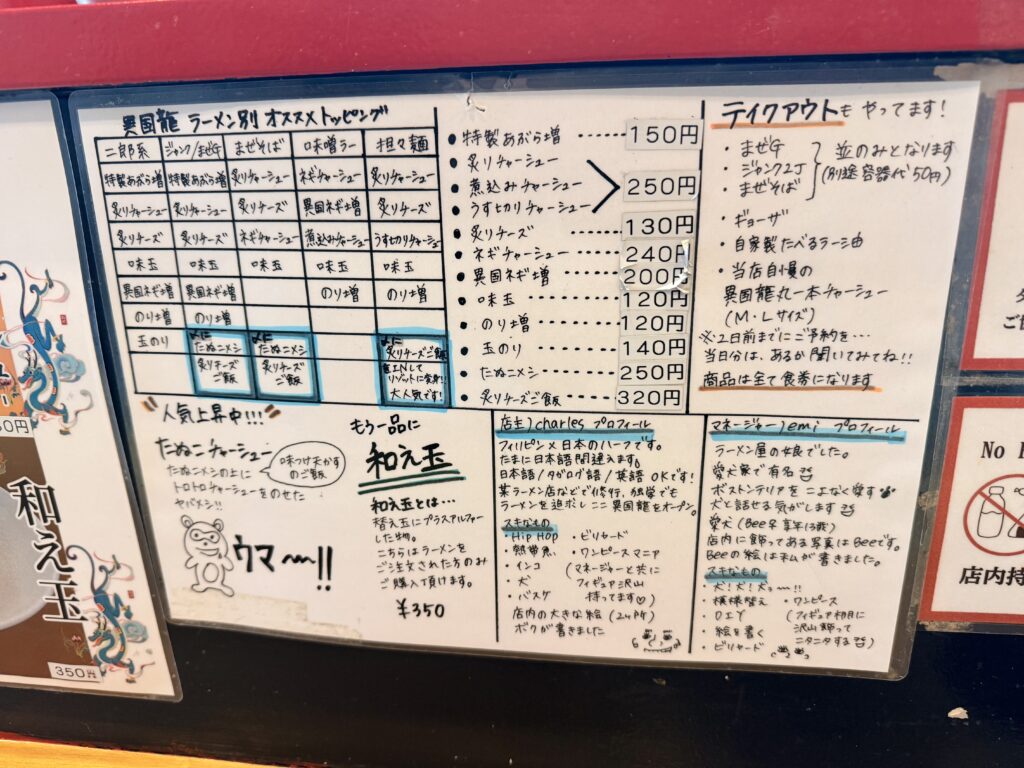 一般的なラーメン店なら専門性を絞るところを、異国龍はあえて複数ジャンルを高いレベルで展開しています。