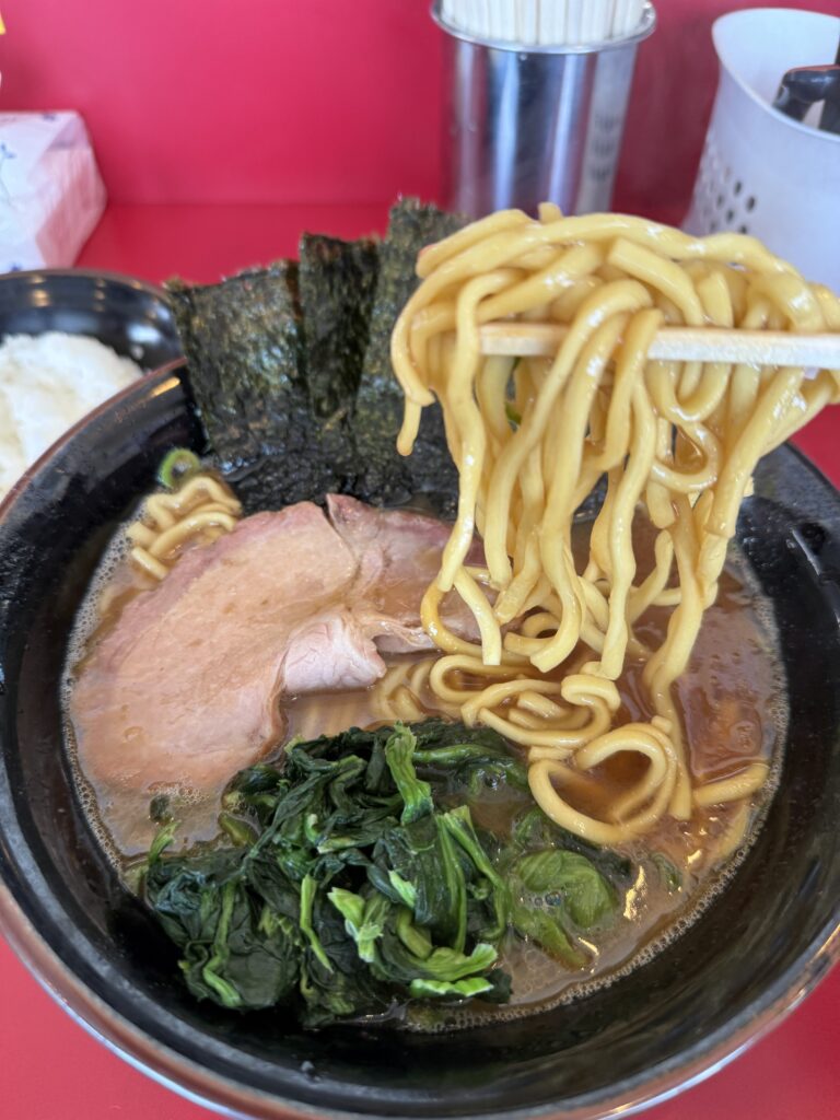 まるで肉を丸ごと味わっているかのような奥行きのあるスープは、ただ濃いだけではなく層の厚い旨味が楽しめるのが魅力。口の中に広がる芳醇な動物系の風味は、王道家系列ならではの完成度の高さを感じさせます。