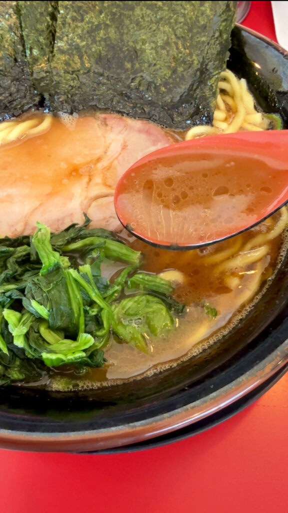 ガツンと濃厚な豚骨醤油スープは、醤油ダレのキレと動物系の旨味が絶妙に絡み合い、一度食べると忘れられない存在感を放ちます。